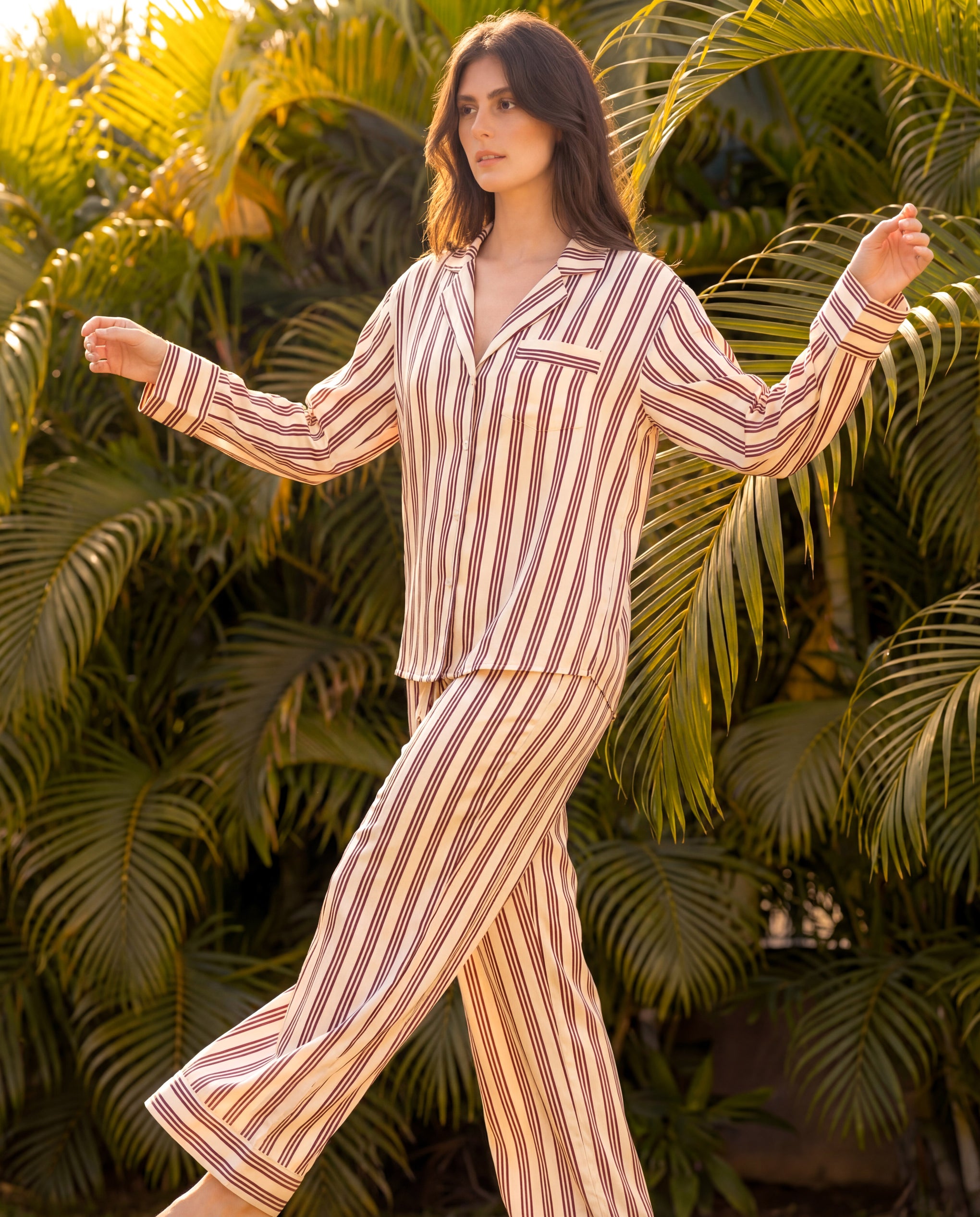 Beige Stripes Braless PJ Set